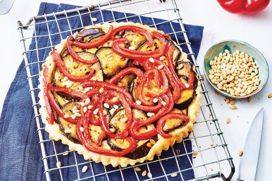 Tarta tatin de berenjena, pimiento y requesón